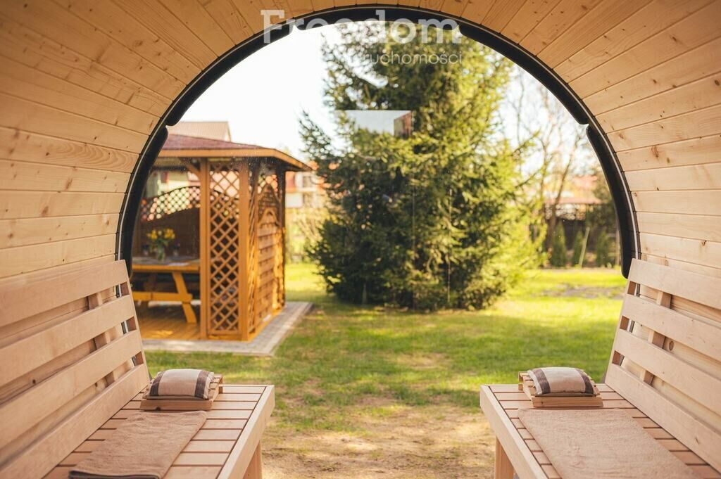 • wolnostojąca sauna sucha z panoramiczną szybą, z której